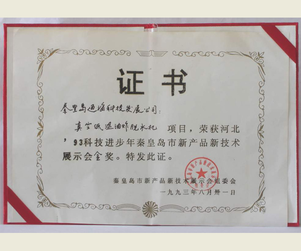 ★1993年8月,申请真空油炸技术专利,1994年6月获得专利权。