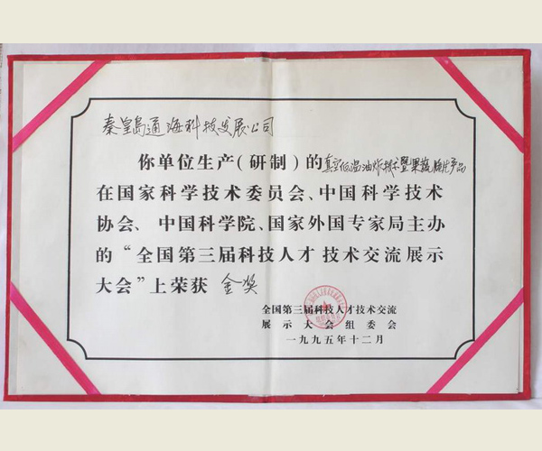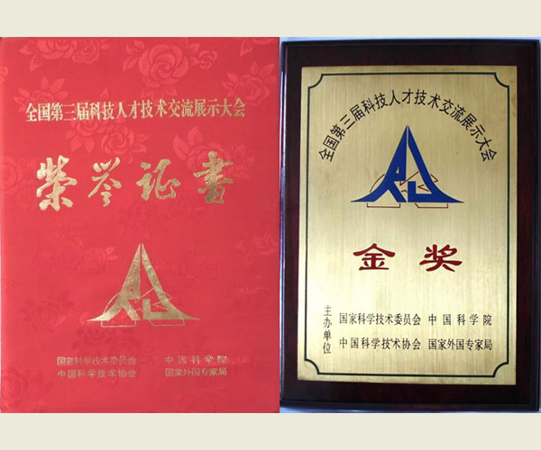 ★1995年,在国家科委、中国科协、中科院、外国专家局和中央电视台联合举办的“全国第三届科技人才技术交流展示大会”上获金奖。