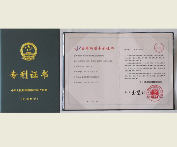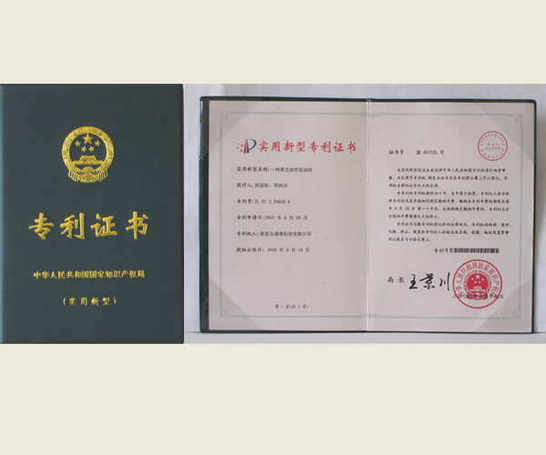 ★2002年上述两种新机型先后获专利权。经国家知识产权局查新证实:具有新颖性和创造性,标志着我国真空油炸技术已跻身世界前列。