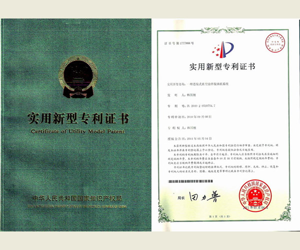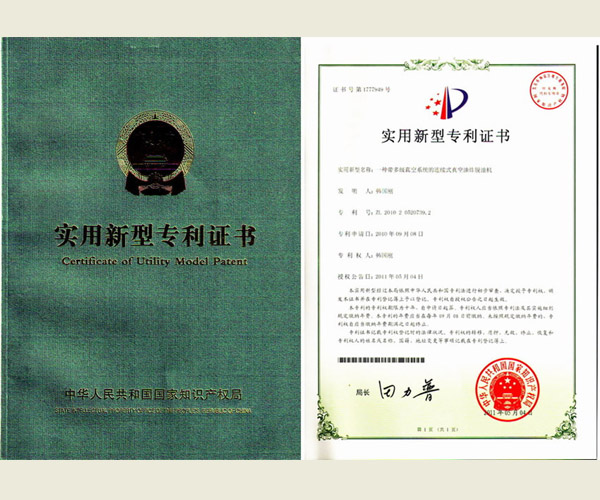 ★2011年5月4日,“带多级真空系统的连续式真空油炸脱油机”获得专利权;